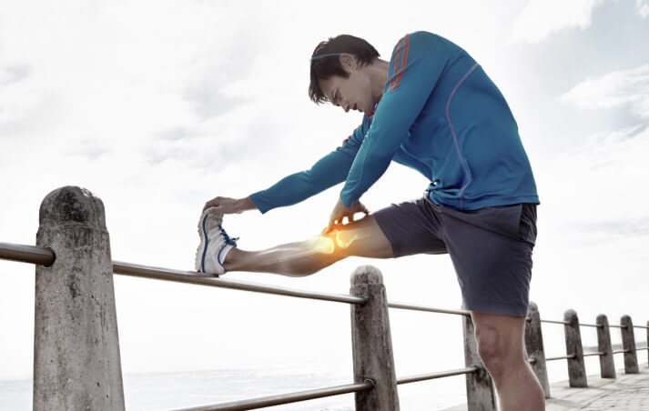 Ligament injuries occur when the bands of connective tissue that stabilise the knee joint are stretched, or partially or completely torn. These are common among athletes who frequently perform movements that involve sudden impacts, stops or rotations to the knee.